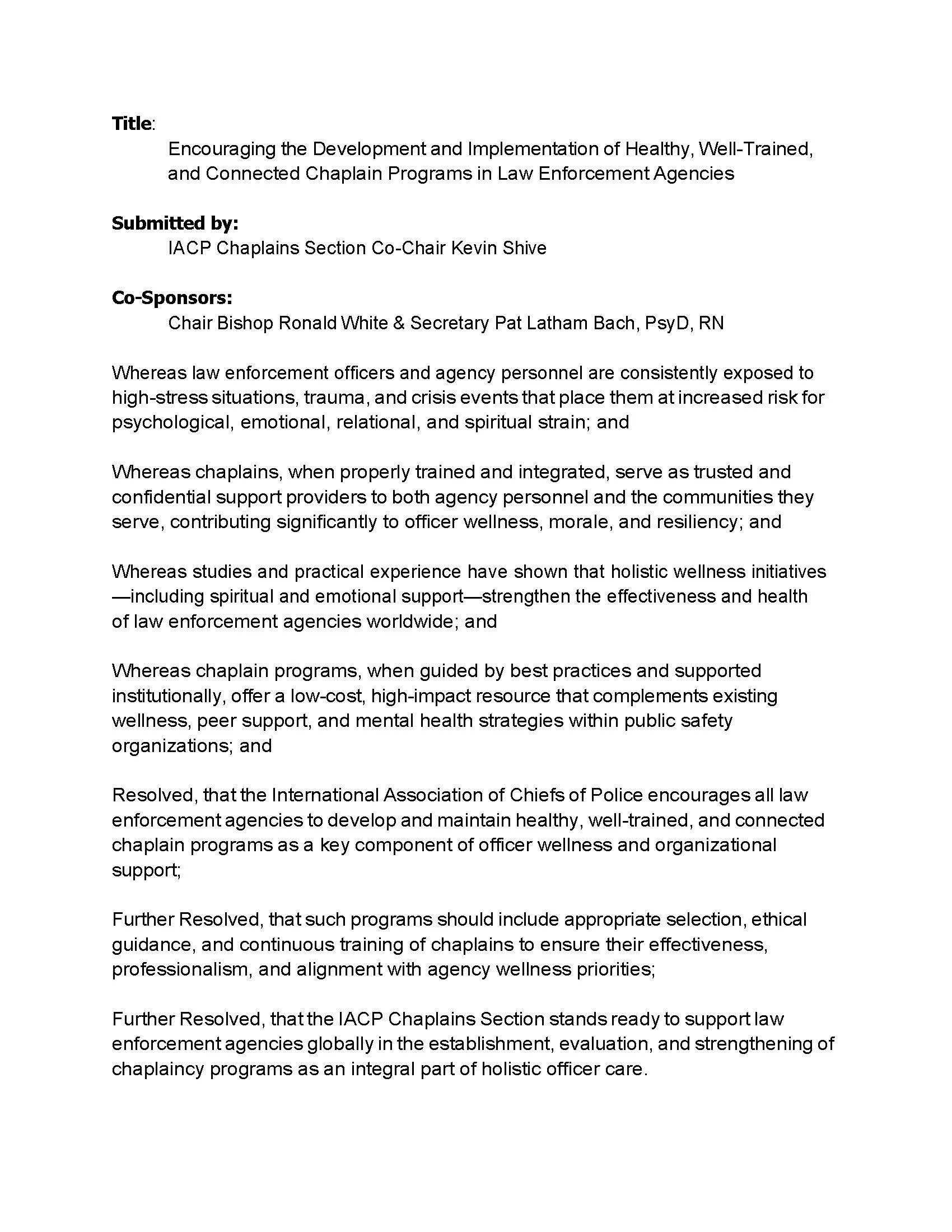 IACP Chaplain Resolution